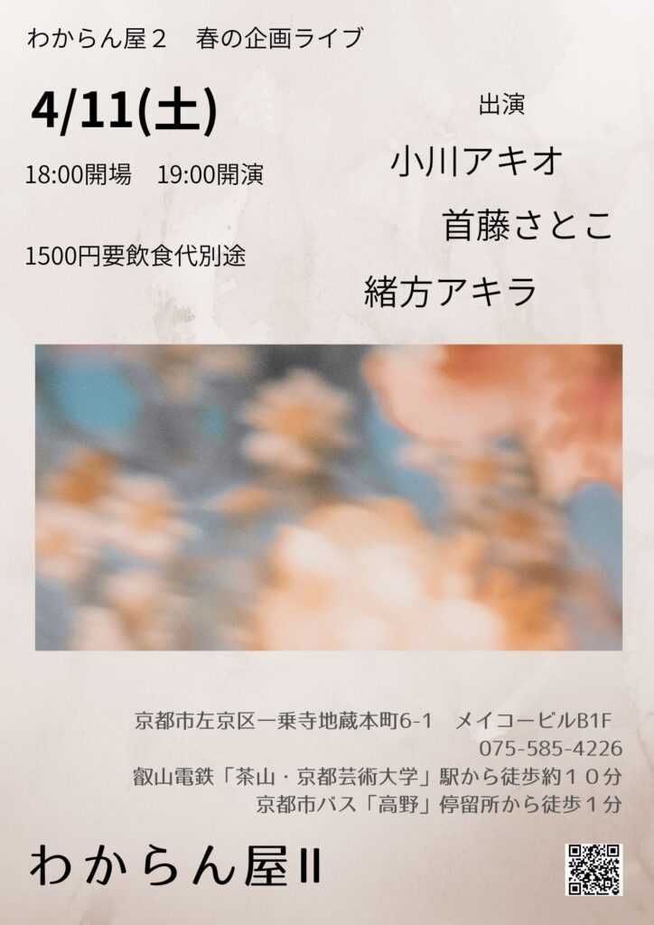 ミカコ・ハサウェイさん企画のスリーマンライブです。 約1年ぶりのソロライブ、既存の曲を大幅にBrush Upしてドッチーズの人生67年の集大成をお届けします。